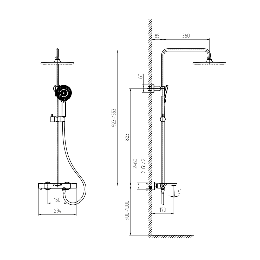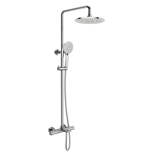 душевая стойка; комплект эксцентриков; термостат; верхний душ; душевой шланг; ручной душ; инструкция.