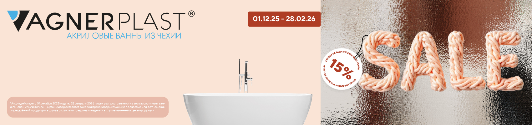 /Скидка 15% на ванны Vagner Plast